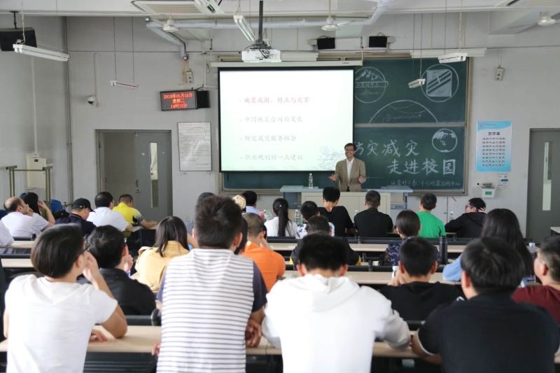 黄志斌研究员做了题为《防灾减灾、走进校园》的报告,报告用深入浅出的语言,分析了地震灾害成因及当前特点,介绍了中国地震台网发展的最新成果,强调了防灾减灾的社会服务功能,并就sunbet申搏官方网站学生的职业规划提出了建议。