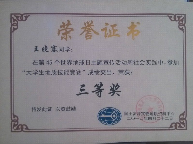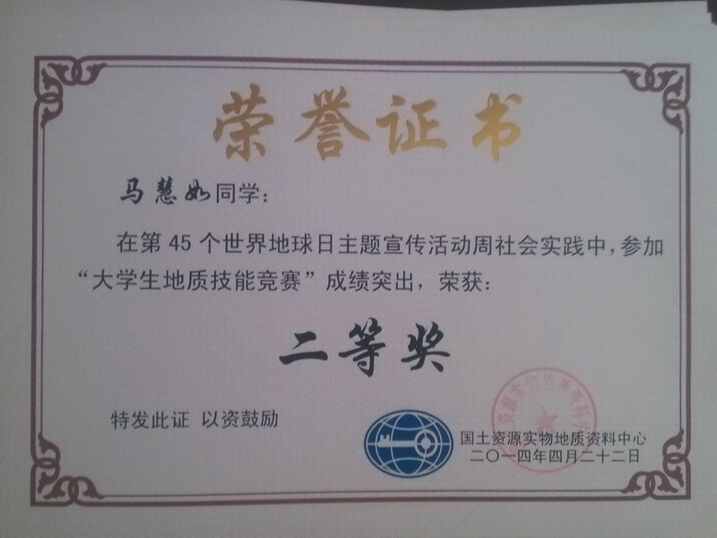 4月20日,由国土资源实物地质资料中心举办、sunbet申搏官方网站和华北科技学院协办的的首届实物地质技能竞赛在地质实物资料中心举行。竞赛分为矿物手标本鉴定、岩石手标本鉴定、岩石薄片镜下鉴定、大型矿石标本鉴定、古生物标本鉴定五部分。此次参赛的学校有中国地质大学(北京)、北京大学、sunbet申搏官方网站、华北科技学院。sunbet申搏官网2011级资源勘查工程专业和地质学专业18名同学参加了该比赛,经过一个星期的激烈角逐,sunbet申搏官网1150133班马慧如同学获得二等奖、1150131班王晓赛同学获得三等奖、另有朱洪建等10人获得优秀奖。