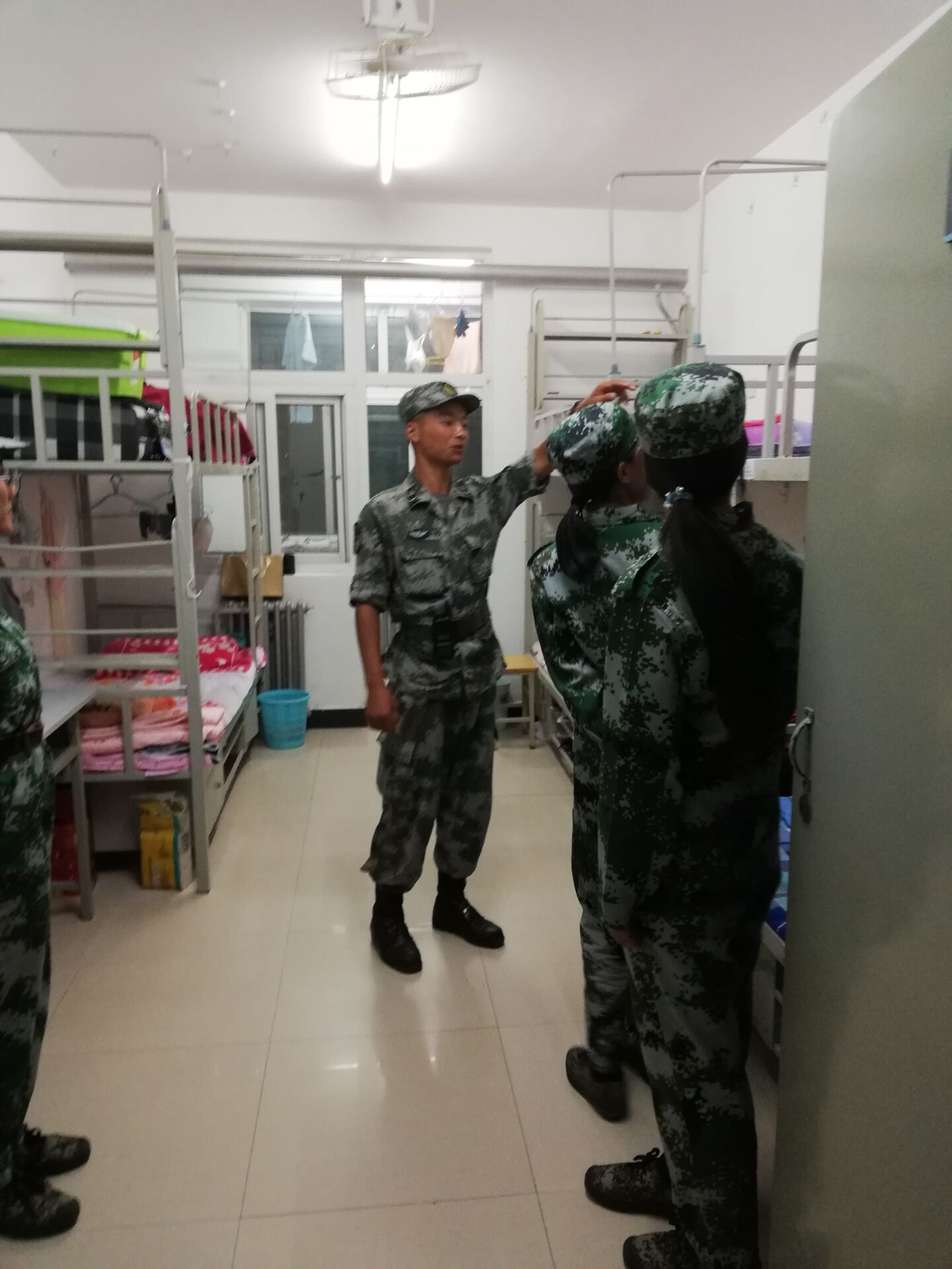近日,sunbet申搏官网组织集中开展新生内务检查,党总支副书记唐圣华、新生班辅导员黄骥超以及新生班辅导员助理、班级助管和新生连军训教官一起走进新生宿舍,检查指导学生内务。各宿舍的新生们转着整齐的军训服装,站着整齐的队列迎接迎接检查,宿舍地面打扫的干干净净,床铺、座椅和物品都摆放的整整齐齐,展现了一周多的军训成果。