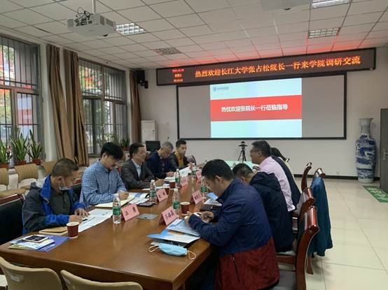 9月23日上午,长江大学地球物理与石油资源学院张占松院长一行5人来sunbet申搏官网调研交流。sunbet申搏官方网站院长姜纪沂热情接待并召开座谈会。sunbet申搏官方网站党总支书记唐圣华、副院长孙珍军、教研室主任顾观文、谭萍、学办主任齐路晶和院办主任李静参加了座谈。