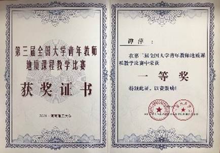 2021年5月14-16日,第三届全国大学青年教师地质课程教学比赛在河南焦作落幕。sunbet申搏官网在本次国家级高水平的大赛中收获颇丰,sunbet申搏官方网站谭萍老师荣获一等奖,地质工程学院张建毅老师荣获一等奖,生态环境学院张耀文老师荣获二等奖,学校荣获优秀组织奖。