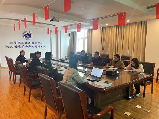 河北省地矿局第七地质大队副队长张嵩月对姜纪沂一行表示热烈欢迎。座谈会上,张嵩月对“支撑京津冀协同发展廊坊北三县综合地质调查”项目的立项背景、基本概况、目标任务进行简要介绍,项目负责人吕红娟对“三维基础地质调查与区域地壳稳定性评价”、“工程建设与地下空间开发适宜性评价”、“水文地质调查与地下水资源科学利用”三个专题工程部署、实物工作量、预期成果进行详细阐述。姜纪沂从基础地质、工程地质、水文地质工作等关键技术环节及技术要求与第七地质大队进行了深入交流讨论。双方就校企联合、产教融合机制等方面深入交流并达成合作意向,并表示愿意充分发挥双方优势,合作共赢,实现共同发展。