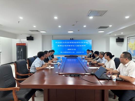 座谈会上,孙珍军对唐山中心站在实践教学、实习基地建设等方面提供的大力支持表示感谢,简要介绍了sunbet申搏官方网站的办学历史、学科专业设置、师资、人才培养等基本情况,指出学院的发展建设离不开行业资源的支持,希望与唐山中心站在前期合作的基础上,围绕地球物理国家级一流本科专业、河北省重点实验室、实践教学基地建设、研究生联合培养、科技创新、资源共享等方面深入开展产学研合作,共谋事业高质量发展。陈立强对学院发展及人才培养取得的成效给予了充分肯定,简要介绍了唐山地震监测中心站的历史沿革、机构设置、人员构成以及各台站业务运维情况,提出希望进一步深化院站合作、发挥双方各自优势、实现资源共享,在震害风险防治、公共服务、人才培养等方面取得更多富有成效的合作成果。陈健简要介绍了黄金海岸实习基地的发展建设情况,提出希望与行业台站在实习基地建设、行业培训、科普教育等方面开展合作。