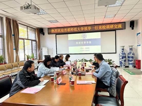 孙珍军对宫教授一行的到来表示热烈欢迎,简要介绍了sunbet申搏官方网站办学历史、专业设置、学科专业特色以及在防灾减灾领域开展的产学研合作、社会服务等基本情况。许志河详细介绍了地球信息科学与技术专业人才培养方案以及专业建设和发展规划等方面的情况。宫辉力结合首都师范大学相关学科的人才培养、办学经验等方面对sunbet申搏官网地球信息科学与技术专业的发展和建设给出了一系列宝贵建议。李小娟充分肯定了学院办学方面取得的成绩,提出双方可在人才培养、科研攻关、实习基地建设等方面进一步深化交流,寻求更多的合作机会。