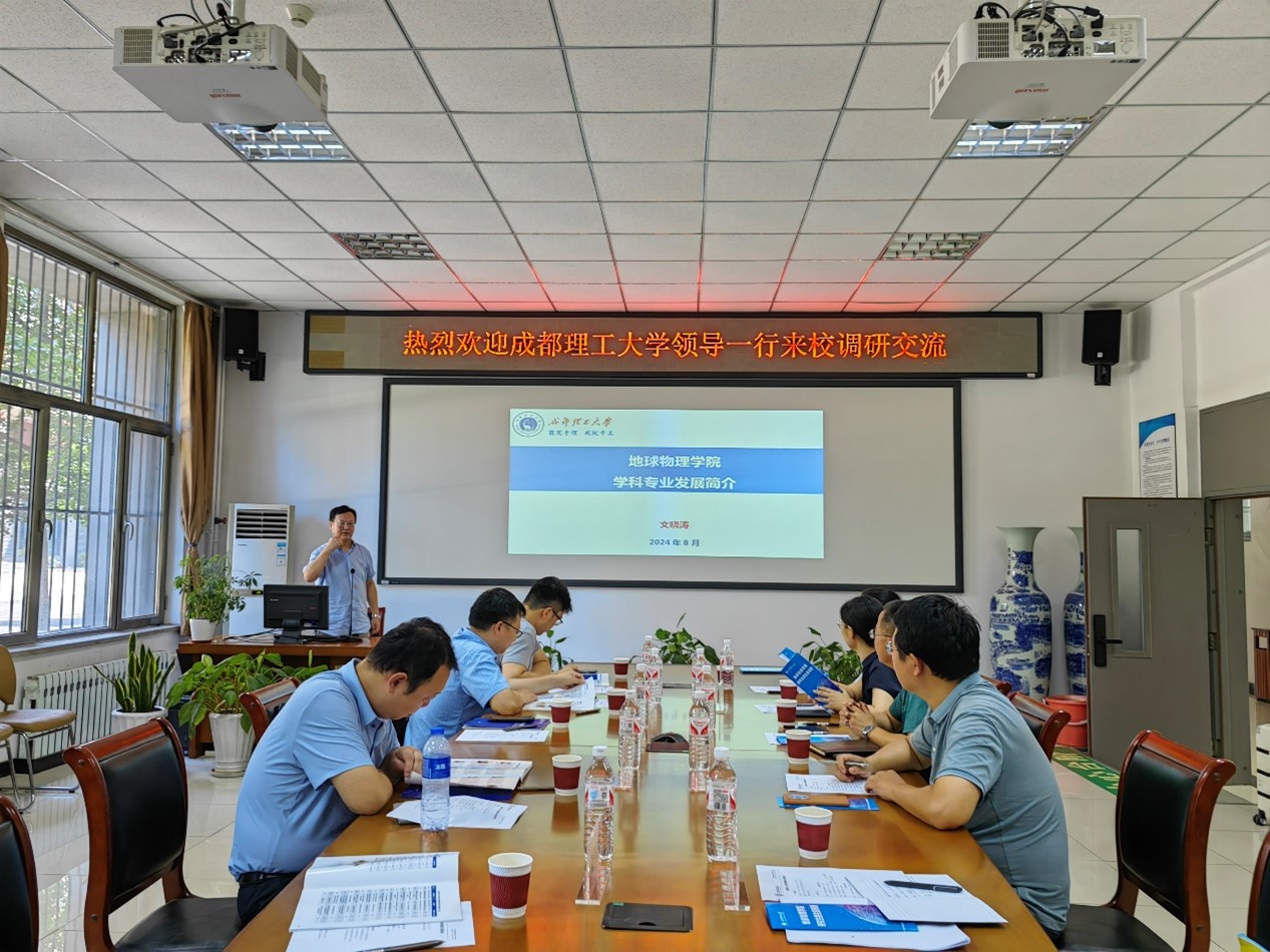 8月8日上午,成都理工大学地球物理学院副院长文晓涛一行5人到sunbet申搏官网调研交流。sunbet申搏官方网站勘查技术与工程专业负责人顾观文热情接待并主持座谈交流,地球物理学教研室主任、地质学教研室主任及部分骨干教师参加了座谈。