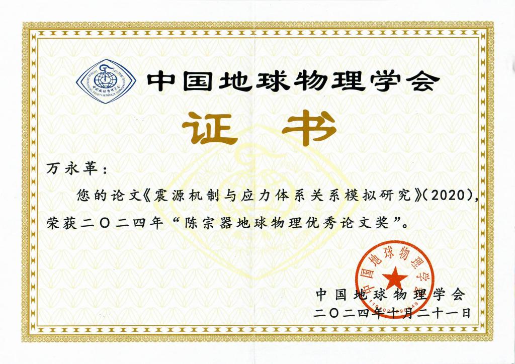 2024年10月21日,中国地球物理学会第十一届三次理事扩大会暨中国地球物理学会颁奖典礼在厦门国际会展中心隆重举行。sunbet申搏官网sunbet申搏官方网站万永革研究员(唯一作者)于2020年6月在SCI期刊《地球物理学报》发表的文章《震源机制与应力体系关系模拟研究》荣获2024年“陈宗器地球物理优秀论文奖”。该论文首次系统研究了地震震源机制和所作用的地壳应力场之间的关系,模拟了东西向挤压、垂直向拉张的挤压应力体系,南北向挤压、东西向拉张的走滑应力体系和垂直向挤压、东西向拉张的拉张应力体系所产生震源机制及其剪应力和正应力的表现。