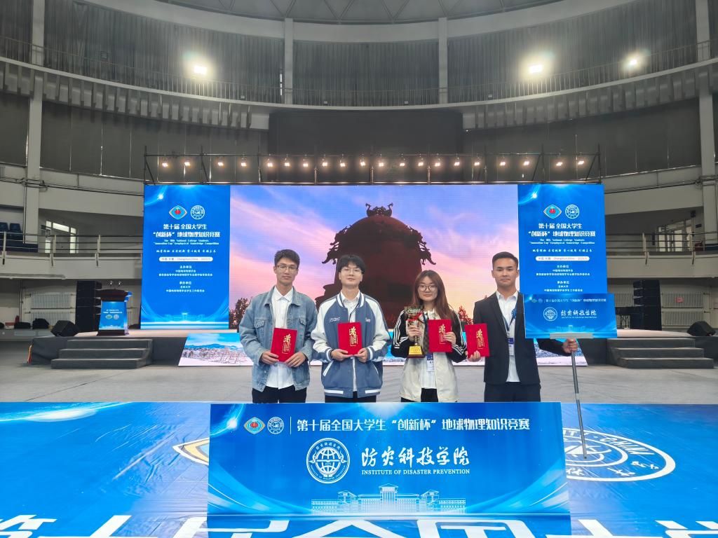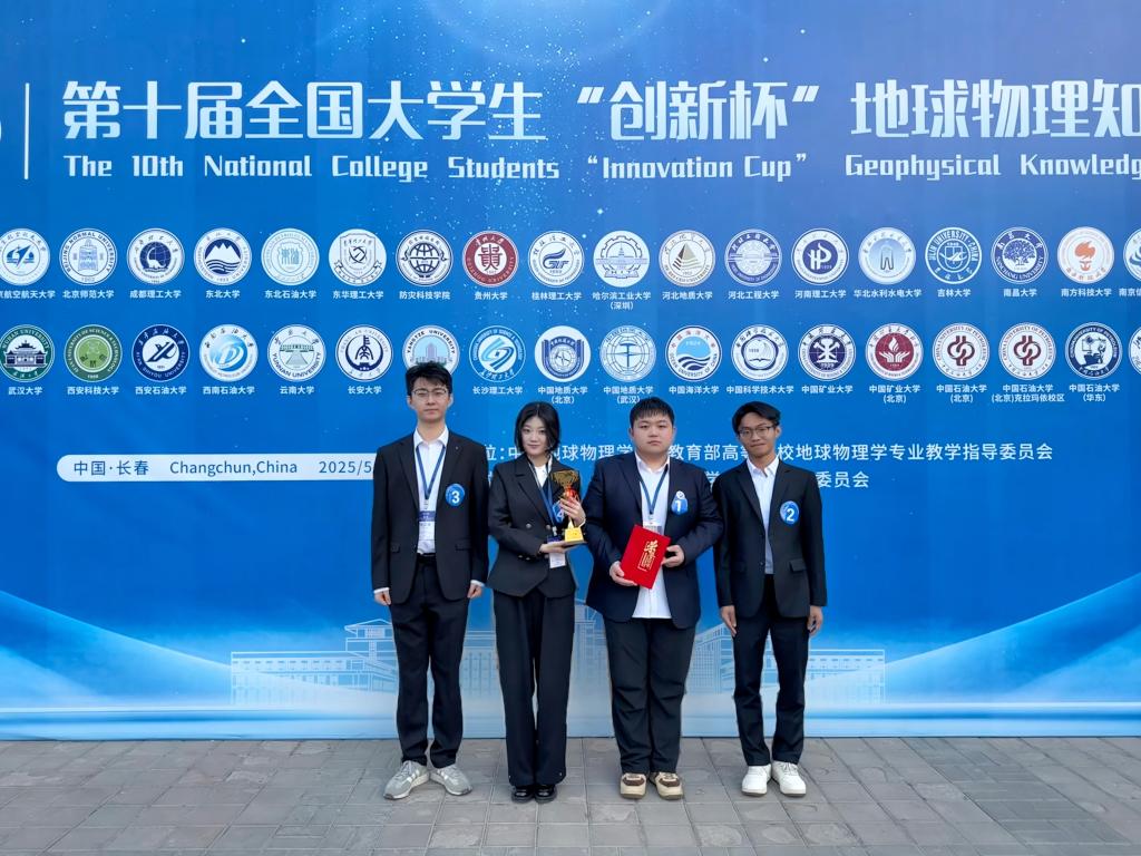 5月21日至24日,学校sunbet申搏官方网站学生在第十届“创新杯”全国大学生地球物理知识竞赛中喜获佳绩。 “重磁电勘探”团队(熊贤材、熊郴皓、李健祥、崔文儒)获得重磁电组全国二等奖;“地震勘探”团队(张正瑞、刘毅博、林志远、许鑫)获得地震组全国二等奖;“固体地球物理”团队(王喜悦、周亚楠、李茳霖、蹇雨柔)获得固体地球物理组全国二等奖。刘毅博同学获地震组“最佳风采奖”。