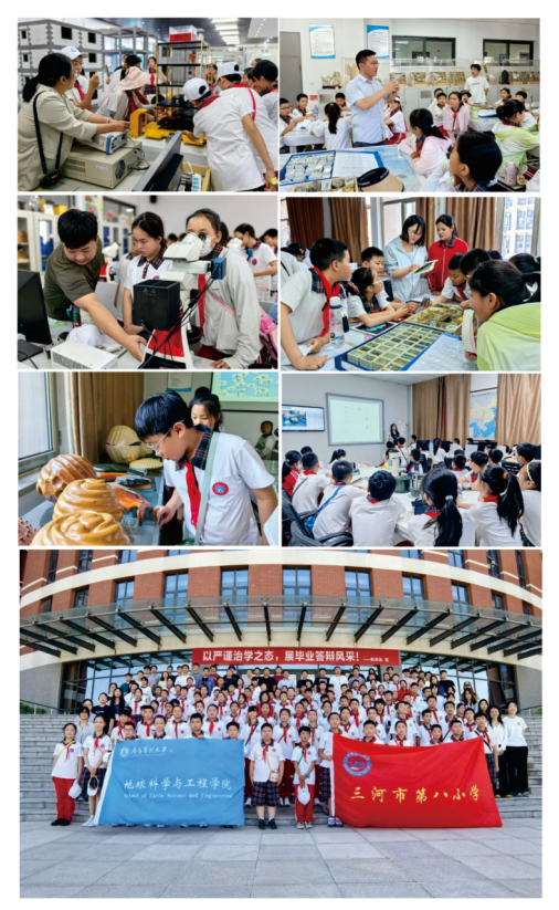 在学校师生的热情引导下,第八小学师生依次参观了矿物岩石、古生物、偏光显微镜、遥测地震台网中心和灾害仿真模拟实验室。近距离观察实物标本模型,感受地球漫长历史中生物演化的奇妙过程和地质变迁的壮丽画卷,了解微观世界中矿物晶体的独特结构和绚丽色彩和现代地震监测技术的前沿发展,感受科技在地球科学和防灾减灾中的重要作用。在灾害仿真模拟实验室,通过模拟演示,深入了解地球演化、构造变迁、灾害成因,掌握房屋抗震原理,感受生命的珍贵意义。