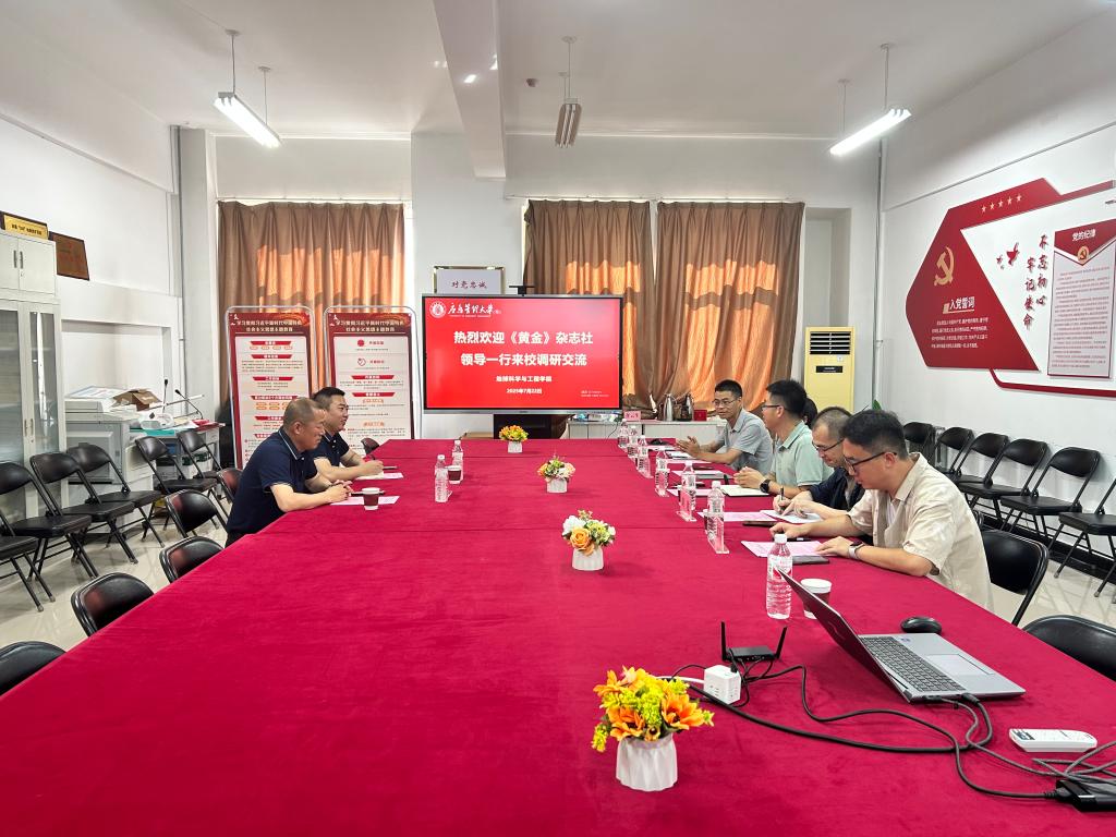 7月22日下午,《黄金》杂志社社长张继武、主任王学阳一行到sunbet申搏官网调研交流。地球科学与工程学院副院长孙珍军热情接待并召开座谈会,sunbet申搏官方网站、矿山安全学院部分骨干教师参加了座谈。