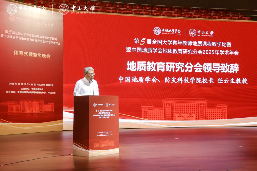 10月25日至26日,第五届全国大学青年教师地质课程教学比赛暨中国地质学会地质教育研究分会2025年学术年会在中山大学珠海校区成功举办。联合党委副书记、校长任云生受邀参会,代表中国地质学会地质教育研究分会致辞,并担任大赛评审专家。