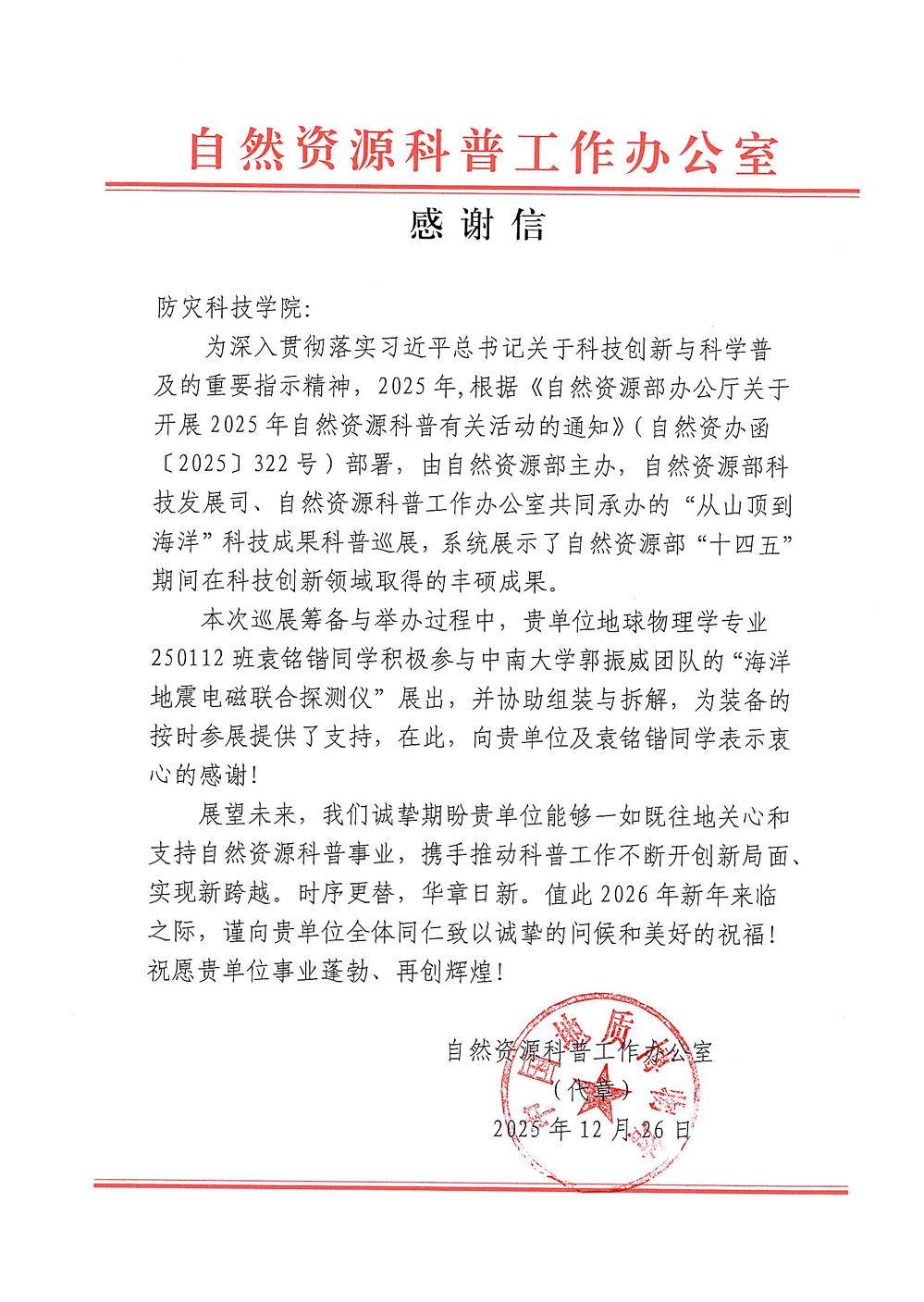 为响应自然资源部关于科普工作的部署要求,在学校的积极支持下,2025 年11月15日 ,sunbet申搏官方网站sunbet申搏官方网站地球物理学专业 250112 班袁铭锴同学积极参与了 “从山顶到海洋” 科技成果科普巡展的工作,并协助中南大学团队完成 “海洋地震电磁联合探测仪” 的组装与拆解,为装备按时参展提供了扎实支持,在实践中展现了严谨的专业素养、积极的协作态度与务实的奉献精神。此次参与,不仅为自然资源部 “十四五” 科技创新成果的科普展示贡献了力量,更让学子在服务国家科普事业的实践中深化了专业认知、提升了实践能力,彰显了学院青年学生服务社会需求的责任意识。这既是学院人才培养实效的生动体现,也展现了学校主动对接国家科普工作、服务自然资源领域发展的责任与担当。