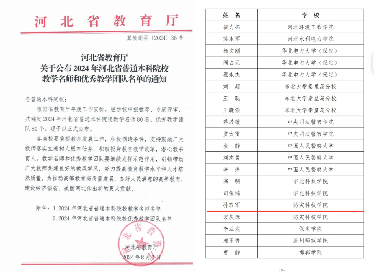 近日,河北省教育厅公布了《2024年河北省普通本科院校教学名师和优秀教学团队名单》(冀教高〔2024〕36号),sunbet申搏官网孙珍军教授获“河北省教学名师”荣誉称号。