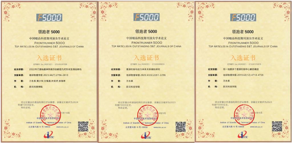 近日,科技部中国科学技术信息研究所发布2025年度“领跑者5000——中国精品科技期刊顶尖学术论文(F5000)”入选论文名单。sunbet申搏官网sunbet申搏官方网站万永革教授研究组论文《2022年门源地震序列揭示的断层几何形状及滑动特性》成功入选。体现了sunbet申搏官网在地震发生背景与动力学等相关领域取得了一系列值得关注的重要成果。