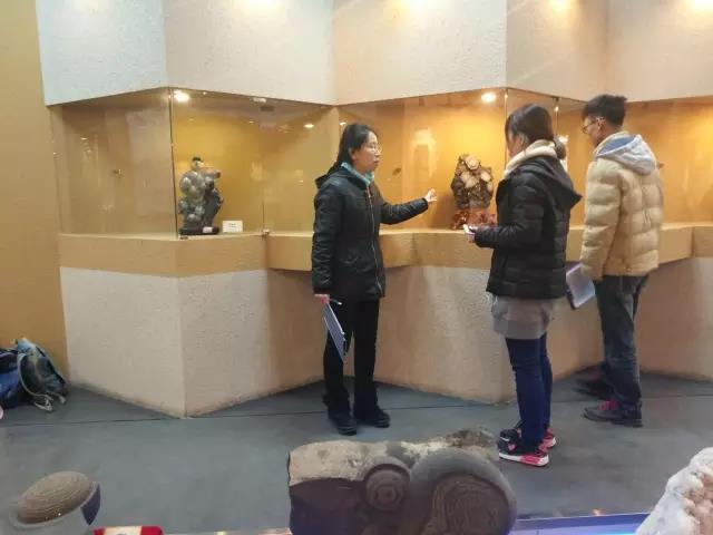 在国土资源实物地质资料中心老师的带领下,同学们参观了大标本园和室内展厅。大标本园展示了来自全国20多个省,127座矿山的大型矿石标本。室内展厅分为地球资源展厅和生命长廊两部分,地球资源展厅展示并介绍各个省份的不同矿石标本,各具形态。生命长廊分为矿物世界生命旅程长廊和古生物化石部分,展现出不同时期矿物和古生物化石的美和神奇。