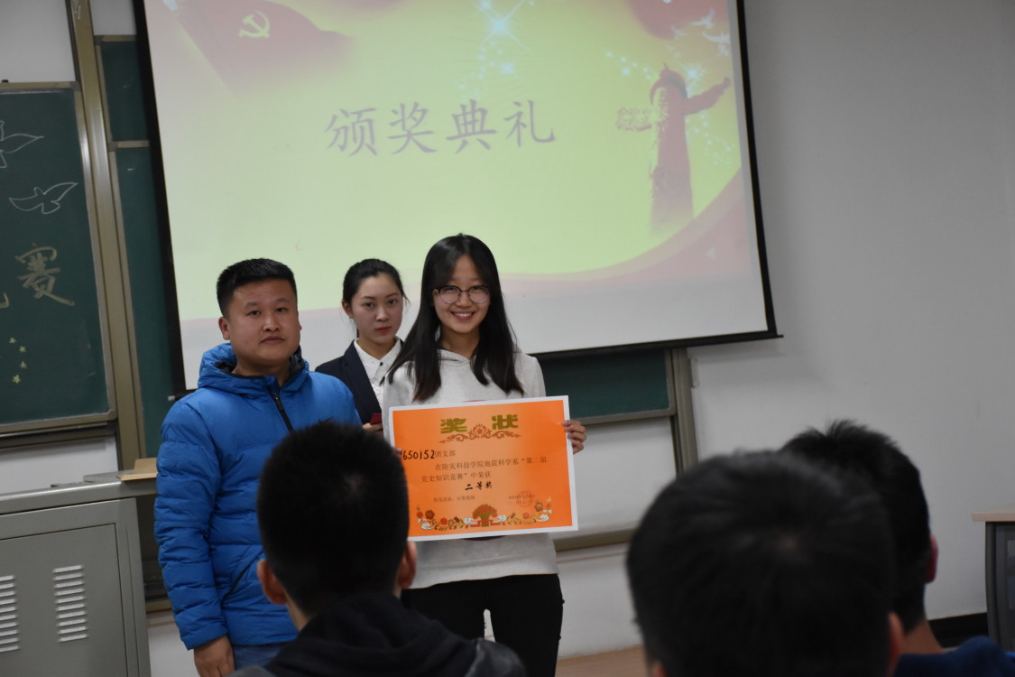 近日地震科学系组织学生党员、入党积极分子在北校实验楼308教室举办了地震科学系“党史知识竞赛”。地震科学系团总支书记唐圣华老师,地震科学系学生第三党支部书记张玉琛老师,地震科学系学生第二党支部副书记张震武,地震科学系团总支副书记陈建航,地震科学系学生会主席王立奇,地震科学系学生会副主席郑荣荧,地震科学系学生会副主席杨迪出席了本次活动。