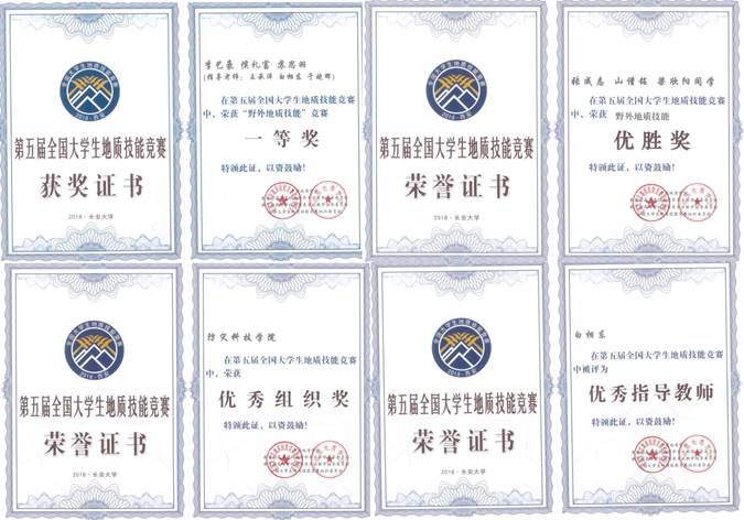 9月14日至16日,第五届全国大学生地质技能竞赛在长安大学举办,sunbet申搏官网代表队取得优异成绩,共获得一等奖1项,优胜奖2项,优秀组织奖1项,优秀指导教师奖1项。