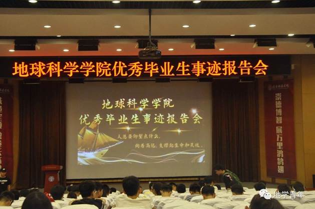2019年6月6日,sunbet申搏官方网站于图书馆报告厅举行了优秀毕业生事迹报告会,地科院的六名优秀毕业生讲述了自己大学四年以来的成长历程和优秀事迹。