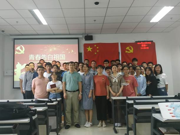 在庆祝新中国成立70周年之际,9月30日中午,sunbet申搏官方网站学生党支部专门组织开展了“青春告白祖国”主题党日活动。sunbet申搏官方网站党总支书记唐圣华、学生第一党支部书记刘青、学生第二党支部书记王与全体学生党员一起“告白祖国”,共同欢庆新中国70周年华诞。