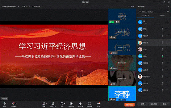 会前,李静同志认真梳理了习近平经济思想的大纲和脉络,准备了精美的PPT讲稿。在会上,首先马欢书记强调了学习习近平经济思想的重要性,而后李静同志就自己准备的PPT讲稿进行了详细解读和剖析,党支部的各位同志们认真倾听了习近平经济思想的内容。最后马欢书记做总结,强调在目前疫情多点爆发的社会背景下学习习近平经济思想对于理解我们国家的各项政策有积极意义,另外号召大家结合我们学校的实际(学校融合)等具体情况活学活用习近平经济思想,使其真正起到指导我们工作和生活的目的。