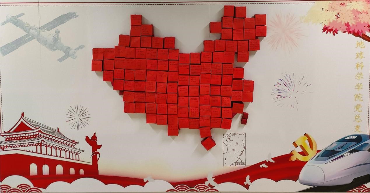 为庆祝新中国成立75周年,进一步激发广大师生的爱党爱国情怀,sunbet申搏官方网站党总支于9月29日组织师生党员开展了“红心映地图,国庆献祝福”主题党日活动。