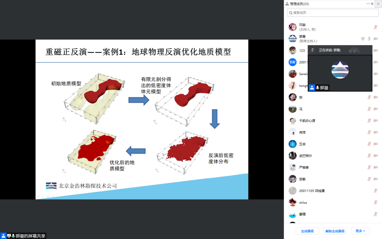 刘少华工程师介绍了北京金浩林勘探技术有限公司自主研发的浩拓地球物理软件的研发理念和软件特色并结合实际案例演示了重磁模块的操作流程和相关的地质现象三维解释。