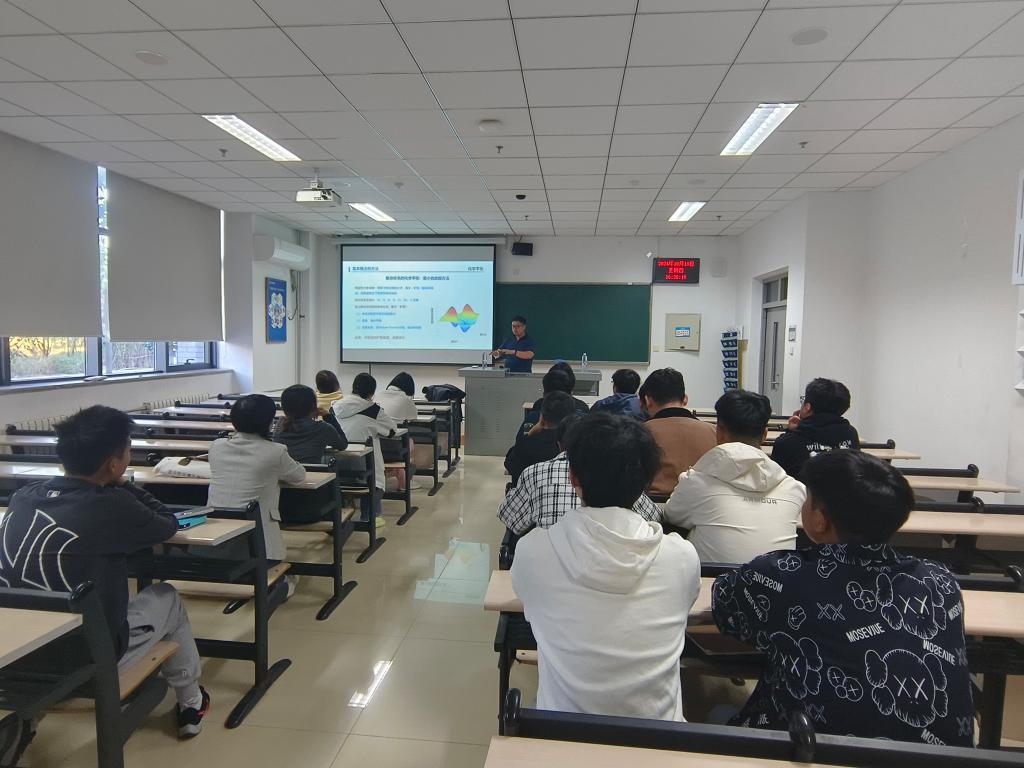 钟日晨基于金属成矿过程的热力学模拟及高温高压实验模拟以及野外翔实的地质调查,解析了变质流体与金成矿作用,介绍了如何结合造山型金成矿理论指导找矿,并就同学们感兴趣的考研问题做了系统介绍。报告结束后,学生们踊跃提问,钟日晨与现场师生进行了互动交流,从研究初衷、科研心得和个人发展等方面进行了答疑,为地质学和资源勘查工程专业学生开阔了视野,树立了通过国家战略矿产资源报效祖国的理想信念。