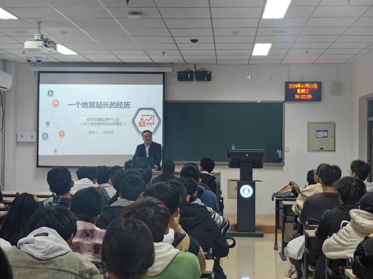 10月23日下午,河北省保定地震监测中心站站长、高级工程师马利军应邀来学校作了题为“一个地震站长的经历”的主题讲座。讲座由sunbet申搏官方网站副院长孙珍军教授主持。