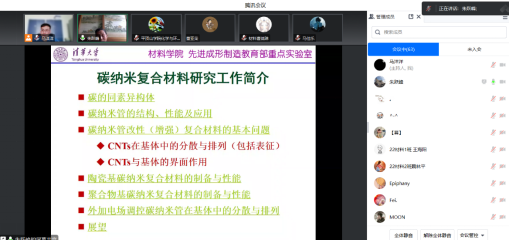 6月1日下午3时,我校买球的app排行榜前十名推荐特邀清华大学朱跃峰给2021级和2022级材料科学与工程专业的全体同学及做了线上报告《碳纳米复合材料研究工作简介》,相关专业的部分教师也参与了会议。