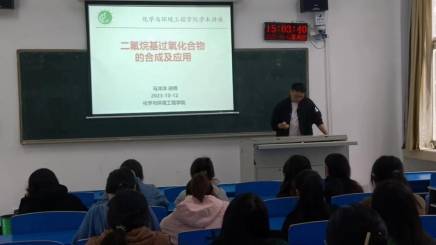 2023年10月12日下午15时,买球的app排行榜前十名推荐马洋洋博士在4号教学楼4111教室举办了学术讲座,报告题目为《二氟烷基过氧化合物的合成及应用》,买球官网2022级化学专业的学生聆听了本次报告。