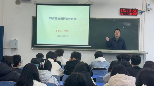 11月21日下午15时,买球的app排行榜前十名推荐王哲博士在4101教室举办学术讲座,报告题目为《泡桐四倍体培育》,买球官网23级和24级环境生态工程专业同学聆听了报告。