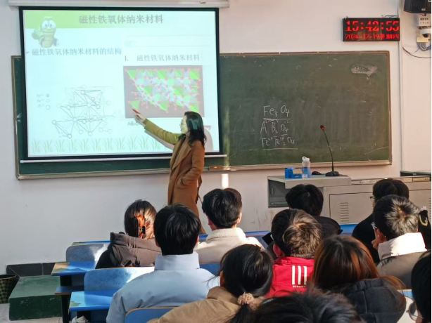 20241219日下午,徐彦红博士在4号教学楼4103教室为材料科学与工程专业学生举办了主题为磁性钙钛矿纳米材料在电催化中的应用的学术报告。报告中,博士向同学们介绍磁性铁氧体纳米材料MFe2O4和钙钛矿纳米材料ABO3的独特结构特性,并重点阐述了MFe2O4ABO3两种纳米材料在电催化中的应用研究,徐博士详细分析了MFe2O4ABO3材料在生物传感和环境污染检测中的重要作用,并重点讲解了如何设计和制备磁性钙钛矿纳米材料,及为何将其应用于电催化中的研究思路。徐博士首次设计制备出了一系列新型磁性钙钛矿纳米材料并开创了在电化学应用的新纪元。目前已将相关研究成果申请并授权国家发明专利,并发表在一些重要国际学术期刊上,和同学们分享了她近年来发表的关于复合材料在电分析领域的研究成果,以具体案例说明了该材料在医学、环保等实际应用中的巨大潜力。此次学术报告不仅拓宽了学生对于前沿材料科学研究的视野,培养了同学们创新思维意识,也为纳米酶的设计、制备及其在电化学中的应用提供了新思路。此报告彰显了材料科学在生物医学、人类健康分析检测中的重要价值,也突显了在环境安全和环境保护中的深远意义。