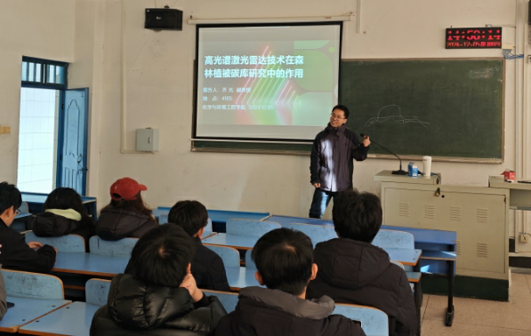 12月5日,买球的app排行榜前十名推荐齐光博士在4105教室举办学术讲座,报告题目为《高光谱激光雷达技术在森林植被碳库研究中的作用》,买球官网23、24级环境生态工程专业同学聆听了报告。