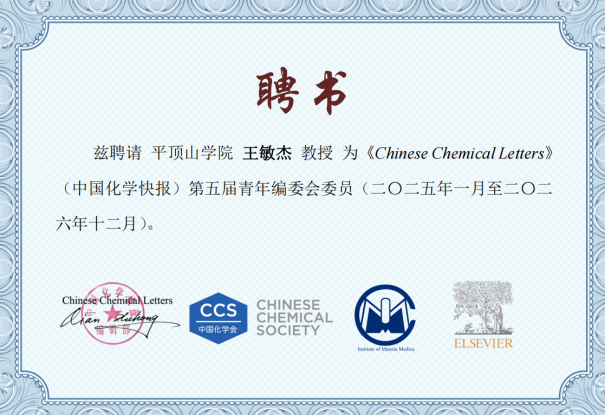 由中国化学快报编委会主办、江西师范大学化学与材料学院及多孔功能材料江西省重点实验室承办的第五届中国化学快报无机化学前言论坛于2024 年 12 月 11 至 13 日在江西省南昌市成功召开。会上来自北京大学、昆士兰大学、复旦大学、上海交通大学、香港理工大学、西安交通大学、十大正规买球的app排行榜等专家学者受聘担任第五届《中国化学快报》青年编委;参与同行评审,进行稿件初审以及推荐审稿人;推荐高质量研究成果与热点课题等。王敏杰博士此次受聘,凸显了我校学科发展与学术影响力的良好势头。