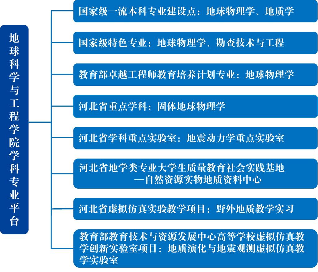学院现有教职工60名,其中正高级职称12名,副高级职称23名;具有博士学位的教师37名;博士生导师3名,硕士生导师26名。学院建有地震监测预测、地球物理探测、遥感地理信息、地球化学、基础地质、新构造与年代学、活断层探测等七大模块共20个实验室,占地面积2000余平米,仪器设备1500余台套,总值5000余万元,生均仪器设备达到5.0万元,教学仪器设备先进、功能齐全,在国内同类院校达到先进水平;学院在天津蓟县、宝坻、北京门头沟、海淀、平谷、辽宁兴城、山西太原、河北三河燕郊、大厂夏垫、秦皇岛柳江盆地、昌黎黄金海岸等地建有十余个校外实践教育基地,并与地震、地调、环保、应急等行业多家单位在教学资源共享、基地共建、实践指导、岗位实习等方面实现协同创新、协同育人。学院先进的教学理念、雄厚的师资力量、优越的教学资源,有力地保障了学生成长成才。